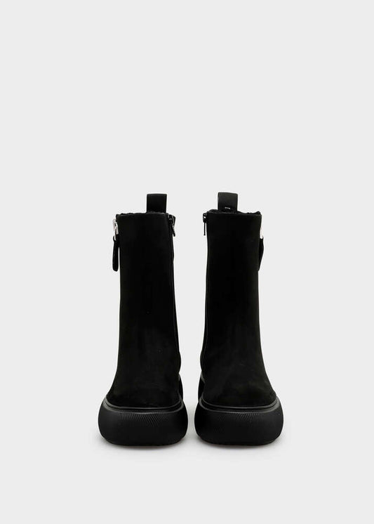WINTER 004LN NERO BOOT IN VELOUR IDRO LEATHER - BLACK SOLE