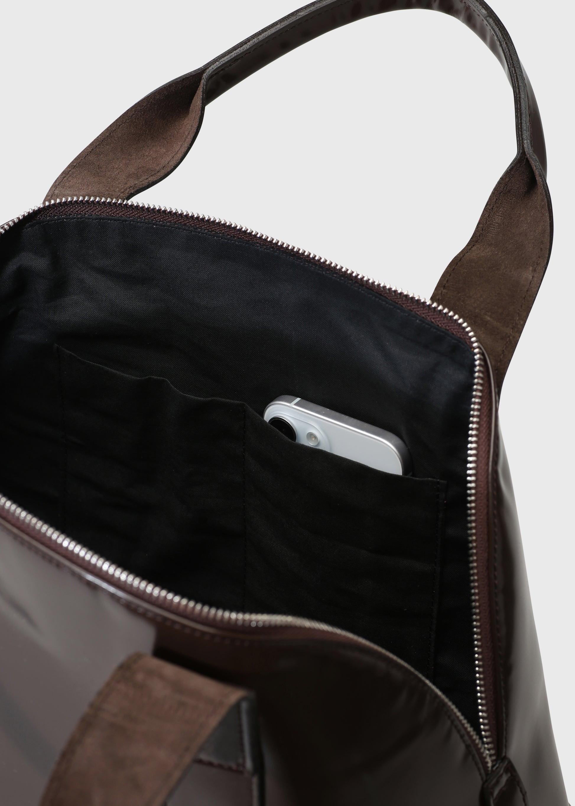 The classic bowling bag revisited, crafted from premium stiffer leather. This bag combines timeless elegance with everyday functionality. The front has stitched detailing and is embossed with the NuDE of Scandinavia logo, while nickel zippers and buckles enhance the refined look. The interior is lined with textile and features a zipped pocket along with two smaller compartments, perfect for your phone and other essentials.
