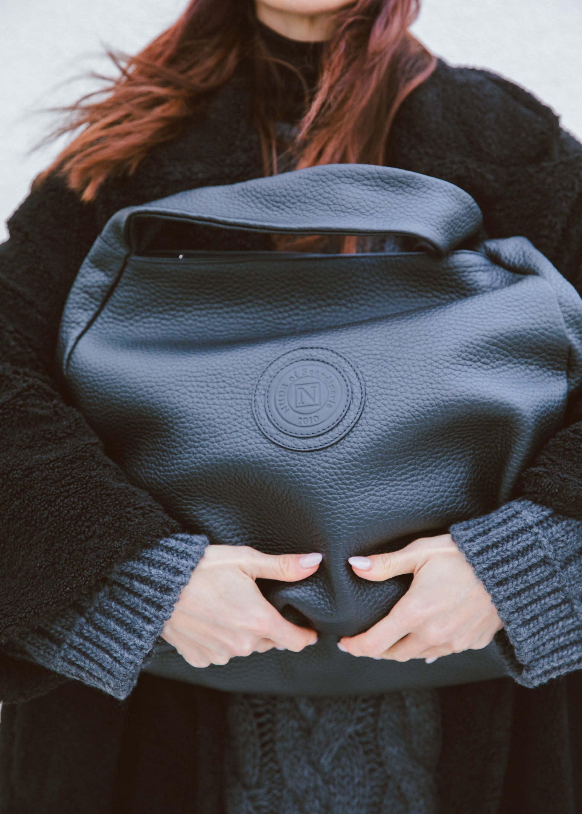 HANDY, our oversized bag expertly crafted from generous cuts of luxurious leather. The shoulder strap seamlessly integrates with the same leather, ensuring durability and style. It features a spacious main compartment secured by a zipper. Inside, discover a pocket for your mobile phone alongside a larger zippered compartment.