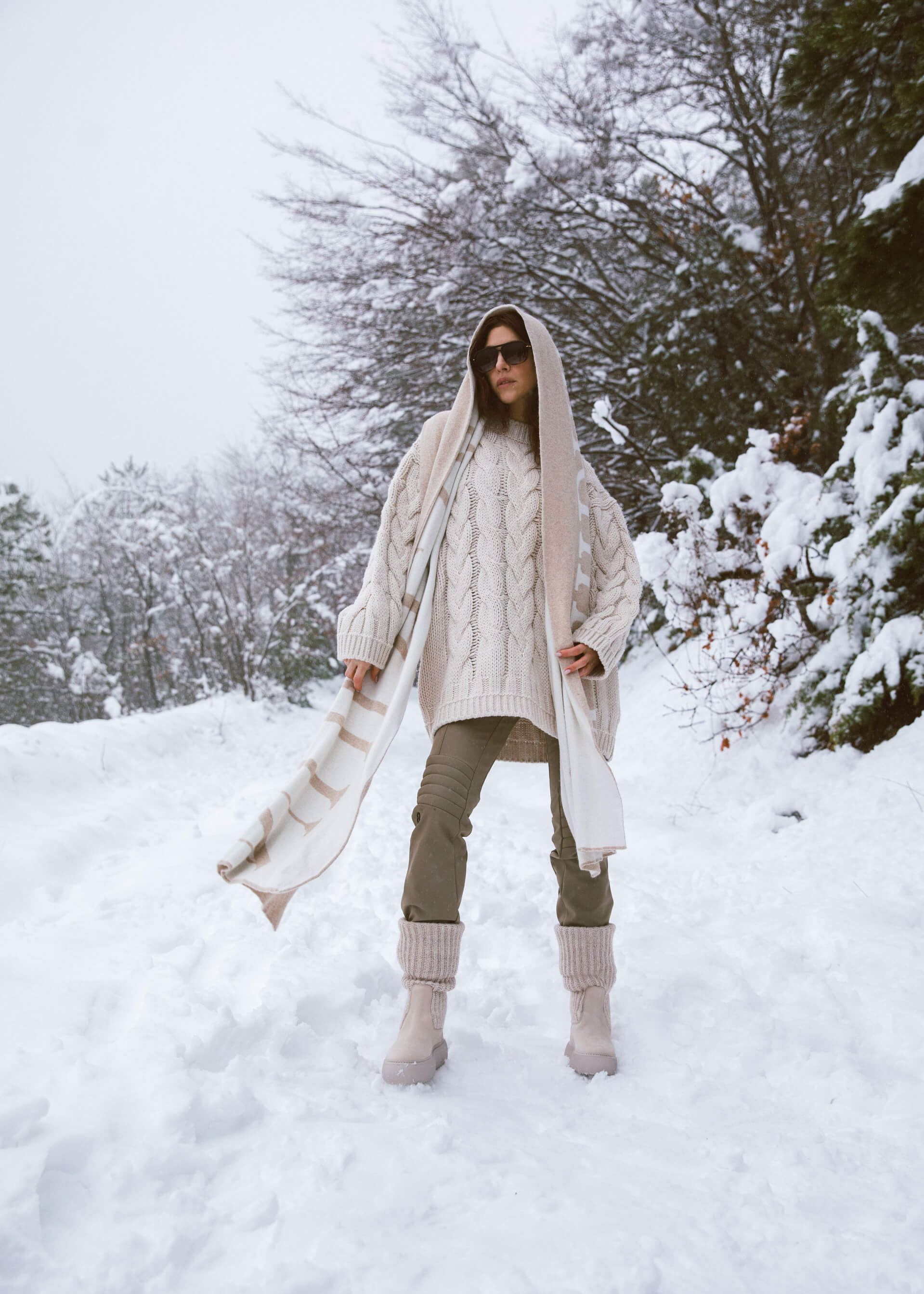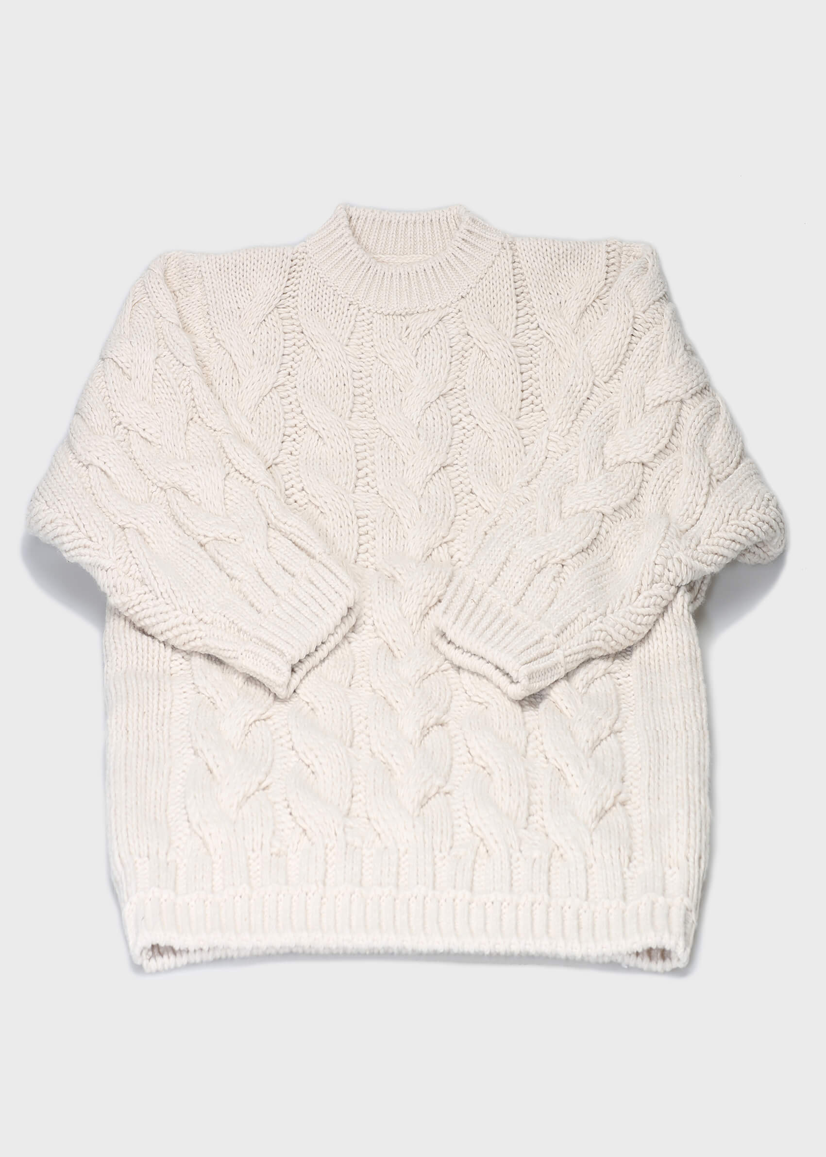 Introducing our classic cable-knit sweater crafted from soft, heavyweight yarn for ultimate warmth and durability. The rich cable pattern adds texture, while the ribbed cuffs, hem, and neckline ensure a cozy, flattering shape. The style has an oversize fit with perfect for layering over shirts or to wear as a dress with a pair of knee-high boots.